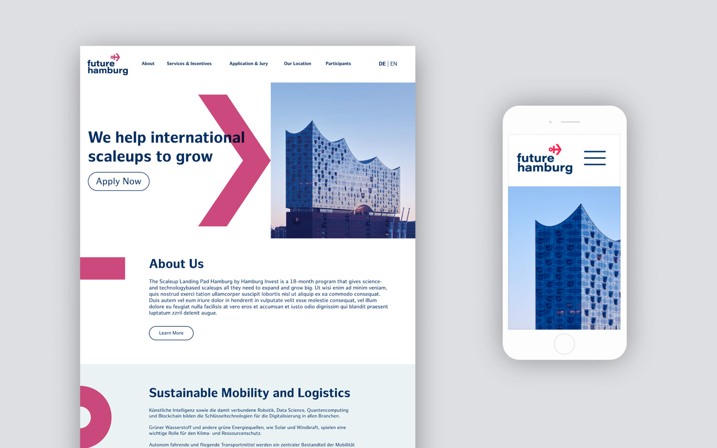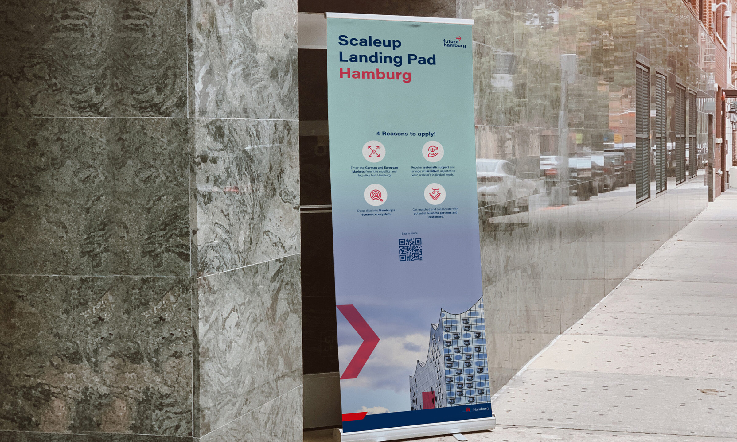 Hamburg bietet optimale Bedingungen für aufstrebende Unternehmen, die wachsen und sich erfolgreich etablieren möchten: Europas drittgrößter Hafen, ein global vernetzter Airport, exzellente internationale Netzwerke. Ziel des Landing Pad – durchgeführt von Hamburg Invest im Auftrag der Hamburger Behörde für Wirtschaft und Innovation – ist es, die Stärken und Vorzüge der Hansestadt für internationale Scale-ups (das sind next level Startups) sichtbar zu machen und zukunftsweisende Projekte in Hamburgs stetig wachsender Innovationslandschaft zu fördern. Eine hochkarätige Jury wählt 10 der vielversprechendsten Scale-ups aus. Dann geht es richtig los: Hamburg Invest unterstützt die Teilnehmenden, ihre Visionen in die Tat umzusetzen – mit Incentives und Services von Business Development, Location Consulting, HR-Diensten bis hin zu Living und Workspace Support.